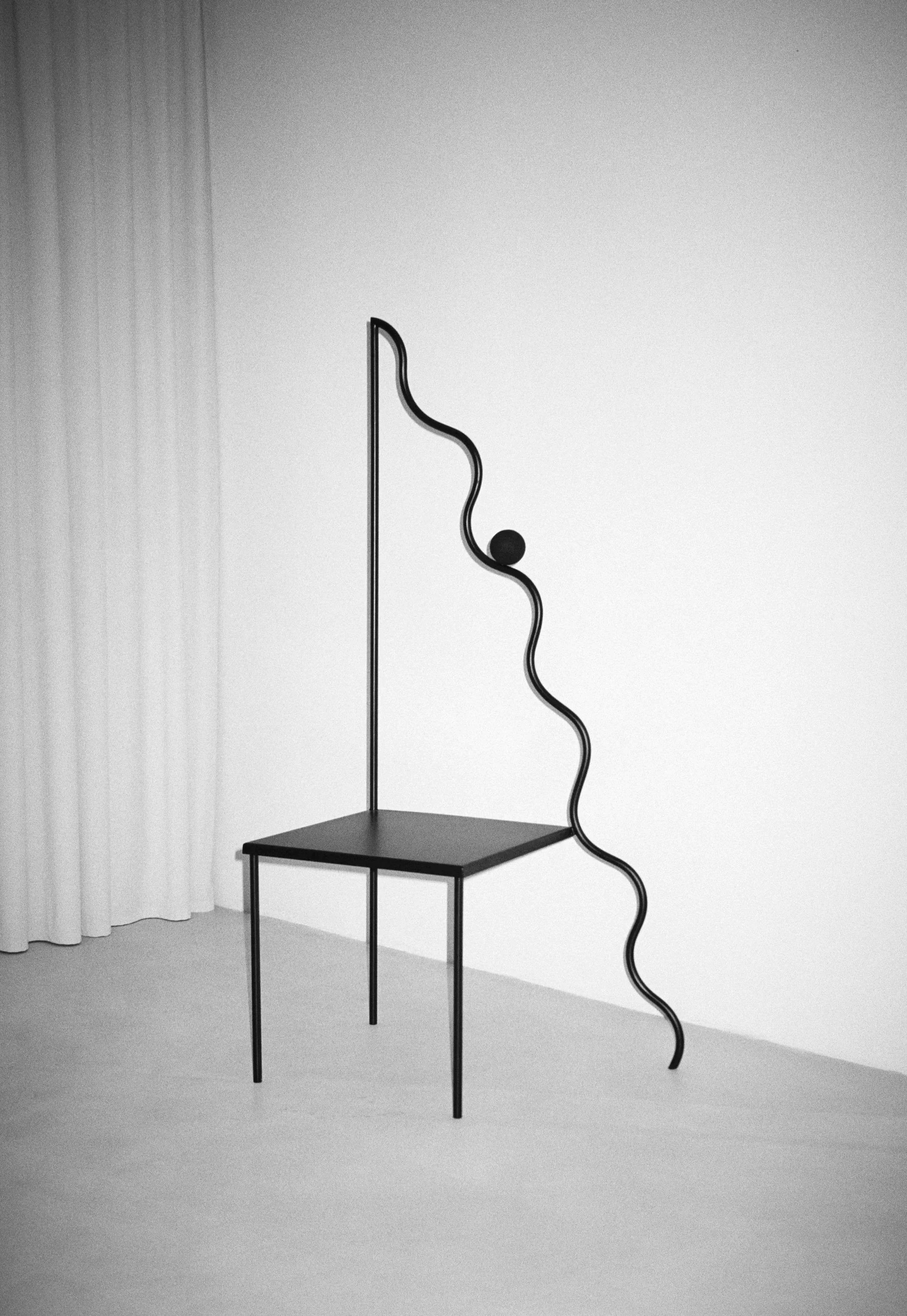 The Constellation is a hand-forged iron chair defined by fine, assertive lines and celestial-inspired forms, it balances geometric precision with organic movement. Delicate rods and spherical nodes activate negative space, creating a sense of rhythm, lightness, and visual tension.